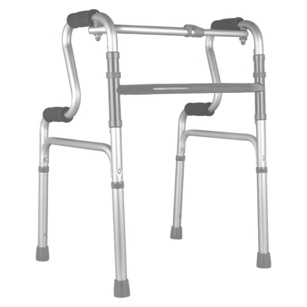 Andador de incorporación de aluminio regulable en altura y de estructura plegable, para facilitar su transporte y almacenamiento.