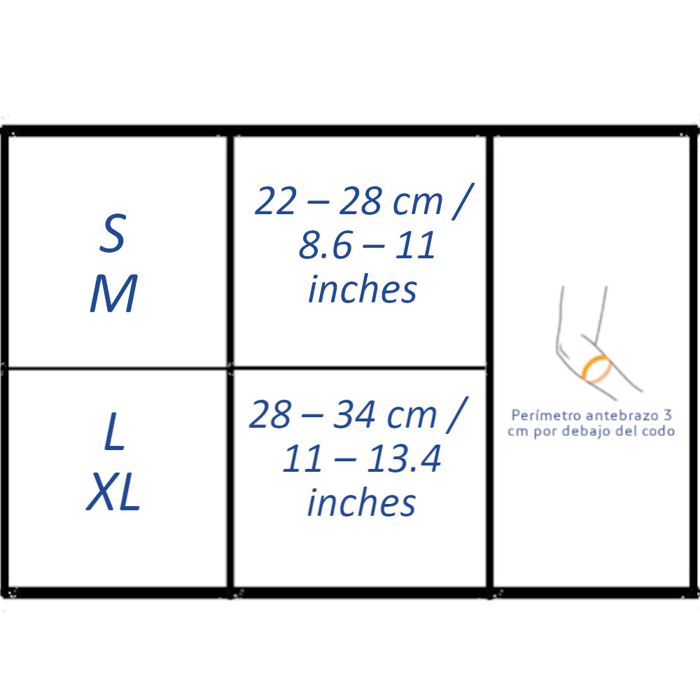 Brazalete epicondilitis confeccionado en material multicapa de silicona (Silprene-F™), transpirable y elástico, que permite regular la compresión y la tracción ejercida sobre la zona afectada en función de las necesidades de cada paciente. Indicado para el tratamiento de la epicondilitis y epitrocleitis