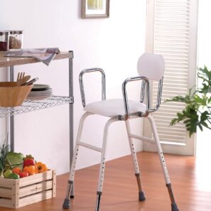 Esta banqueta de apoyo con asa es ideal para alcanzar las partes más altas de los armarios o altillos. Incluso es útil para entrar y salir de la bañera librando el obstáculo o barre más alta sin riesgo de caída. Su base está cubierta de goma para evitar deslizamientos. Sus conteras también están fabricadas en el mismo material.