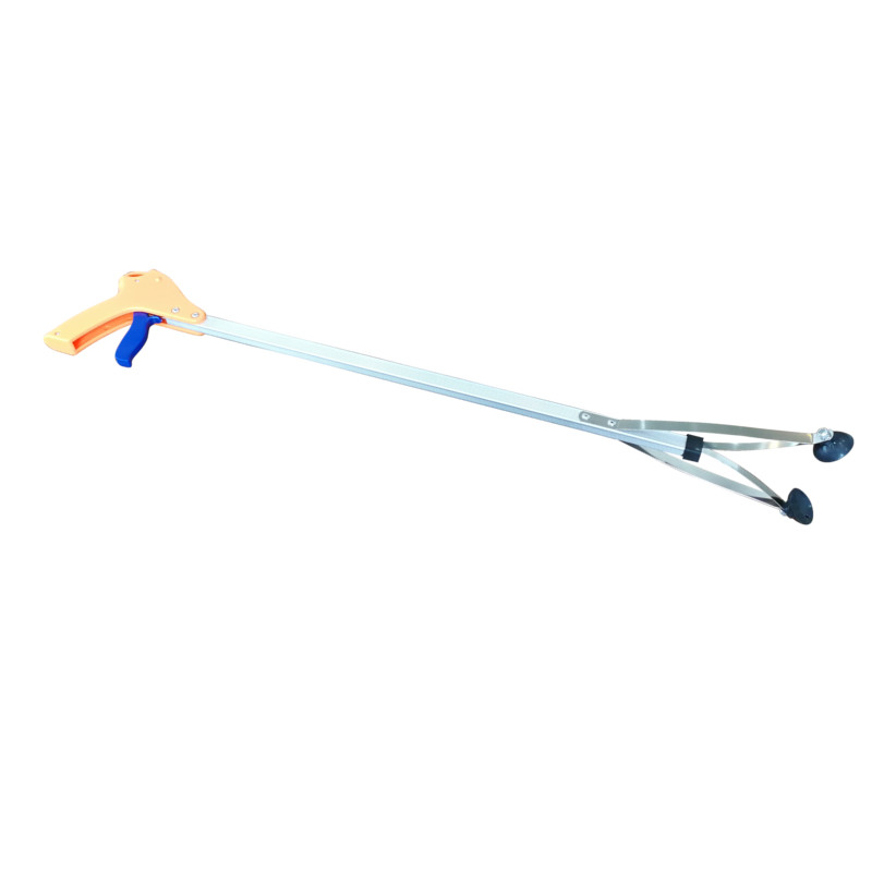 Pinza de aluminio con sistema de gatillo permite coger los objetos que quedan fuera del alcance, bien por distancia o por falta de movilidad y agilidad en las manos o cuerpo de las personas.