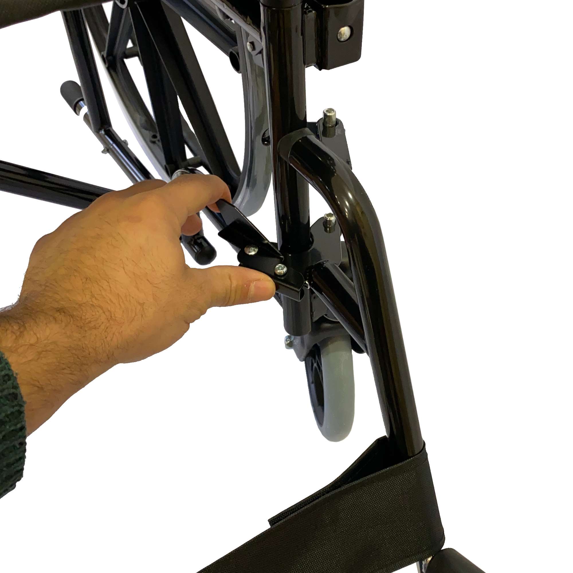 - Una vez ajustado el reposapiés, es importante comprobar que la altura e inclinación fijada no cause fricción entre la parte trasera de las piernas y la tapicería de la silla