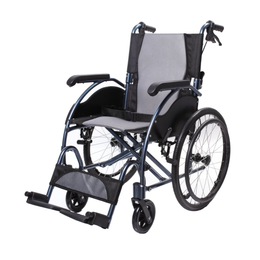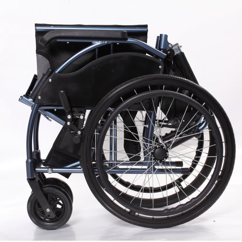 Silla de ruedas de aluminio autopropulsable muy completa con tan solo 63cm de ancho total que permite un mejor paso por puertas y lugares estrechos.